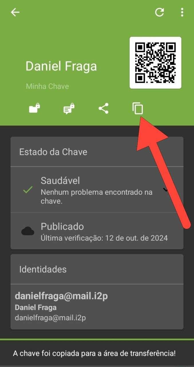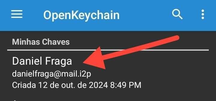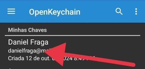 Abra o OpenKeychain e selecione a chave que deseja compartilhar. Clique na chave para visualizar os detalhes