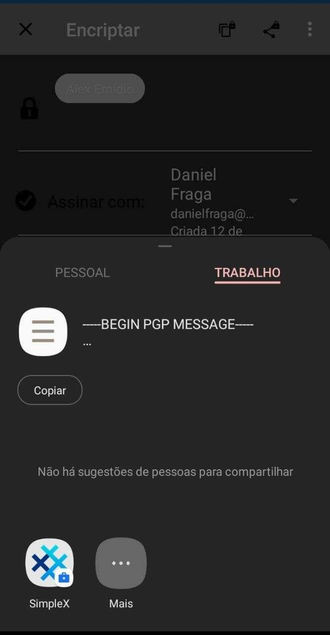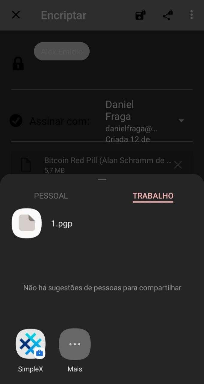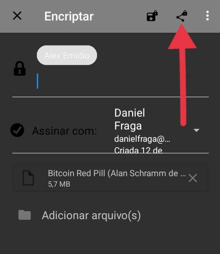 Compartilhar diretamente: Utilize a opção de compartilhamento para enviar o arquivo criptografado diretamente por meio dos seus aplicativos de mensagens.