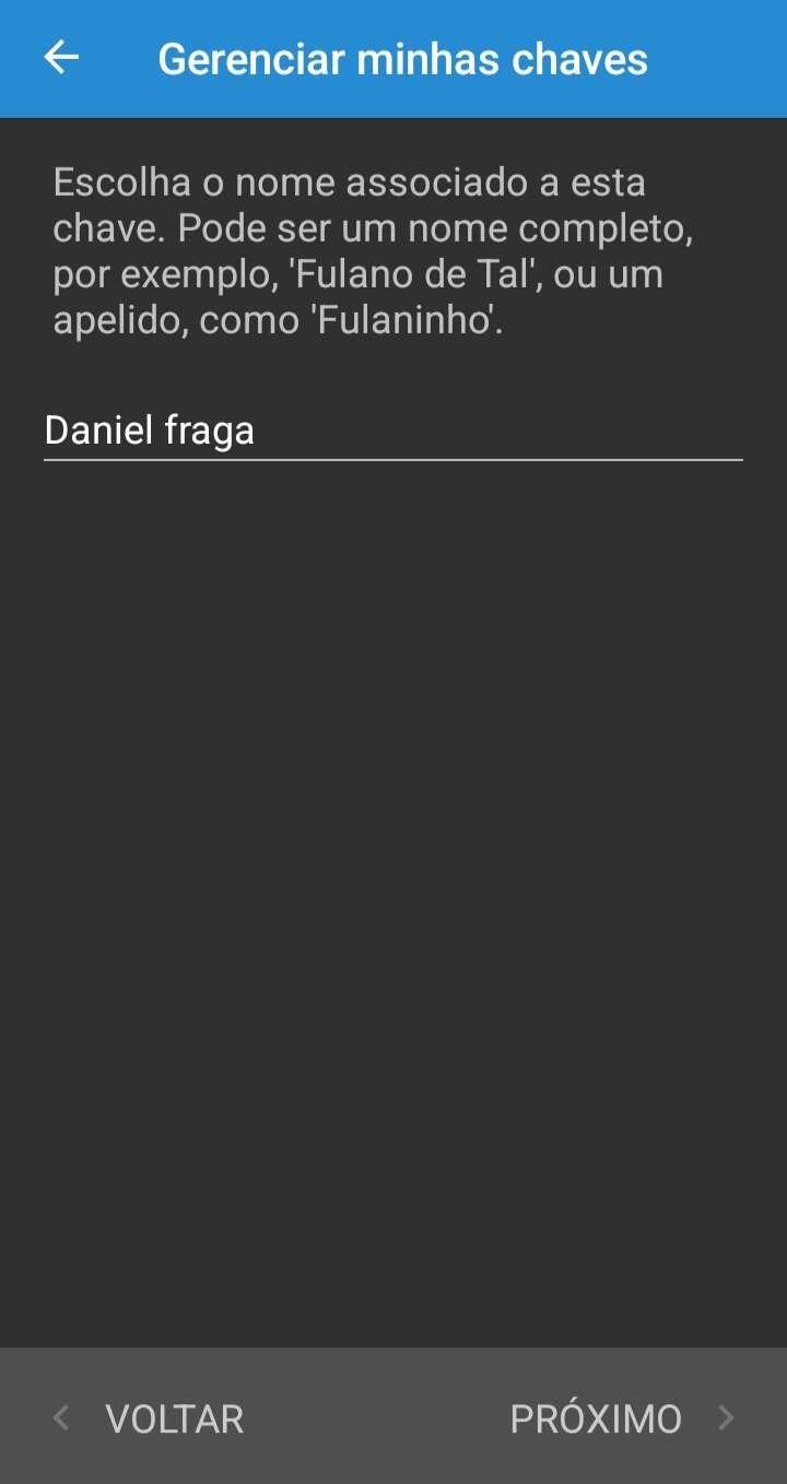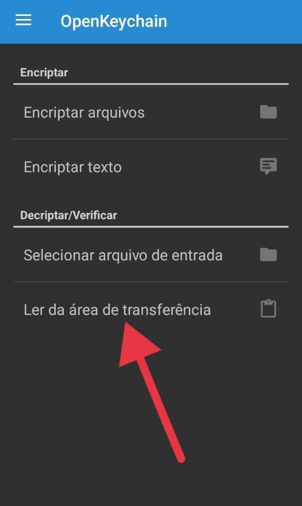 Importar uma chave PGP existente: Você pode importar uma chave PGP que já tenha sido gerada anteriormente, seja por meio de um arquivo no dispositivo ou por outro meio ler na área de transferência