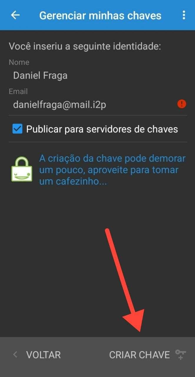 Passo 3: Antes de criar sua chave PGP, verifique se os dados inseridos estão corretos