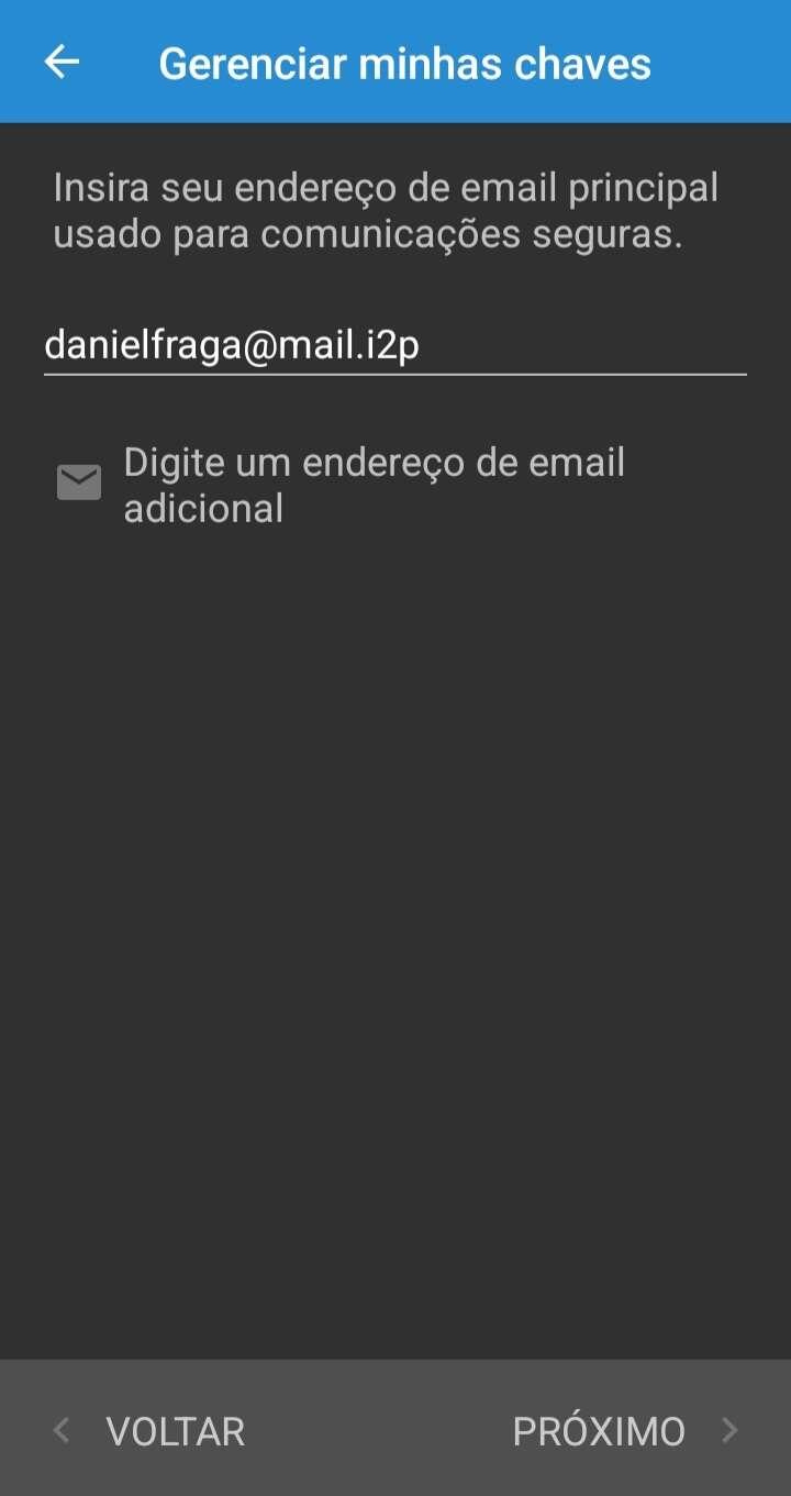 E-mail: Associe um endereço de e-mail à chave, seja ele pessoal ou um e-mail relacionado ao pseudônimo
