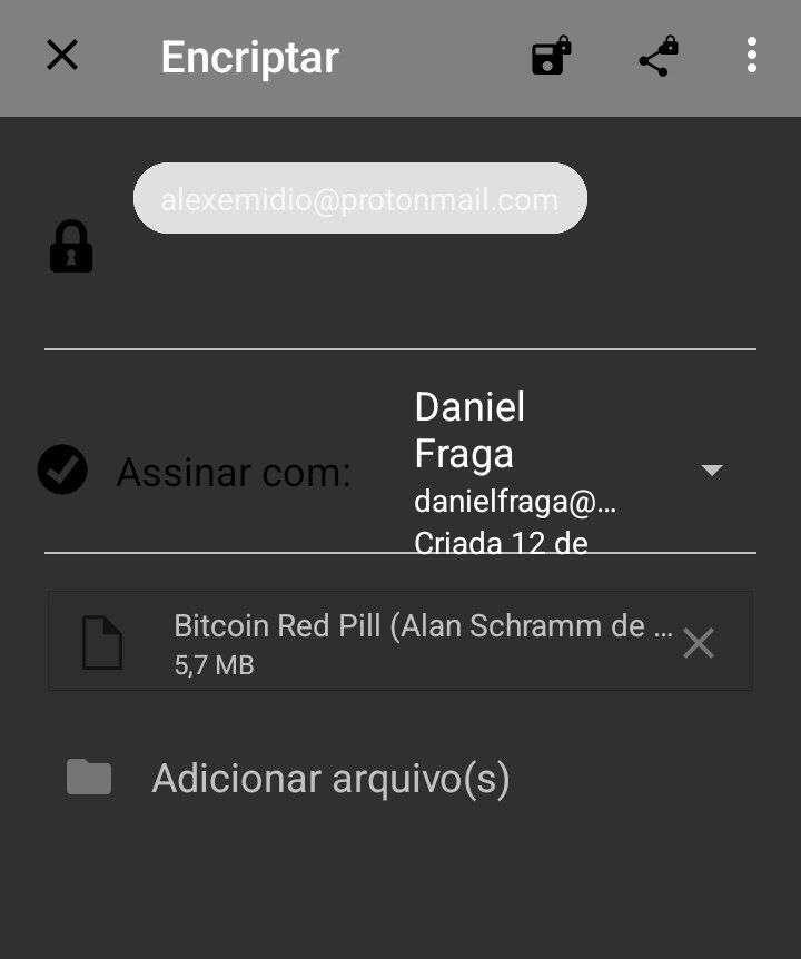 Assinar com: Escolha sua chave PGP para assinar a mensagem.