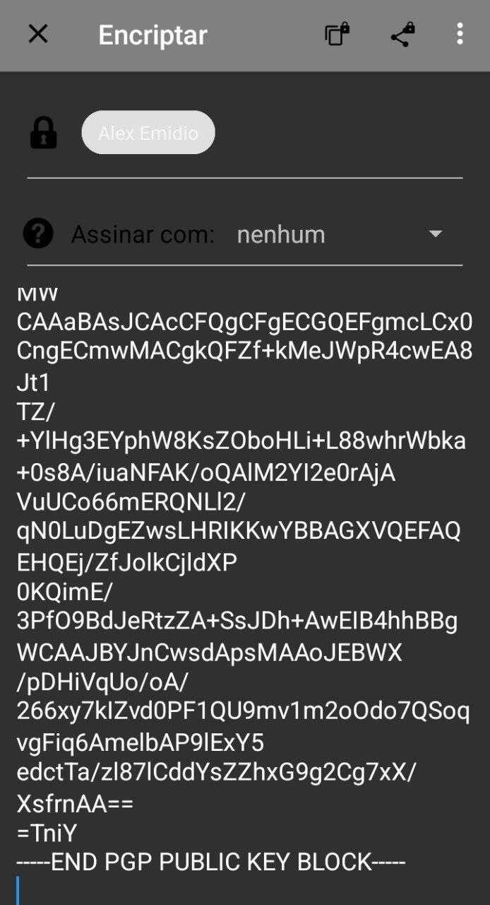 Após criar sua chave PGP, você pode compartilhá-la para que outras pessoas possam enviar mensagens criptografadas para você. Veja o passo a passo de como exibir e compartilhar sua chave pública: