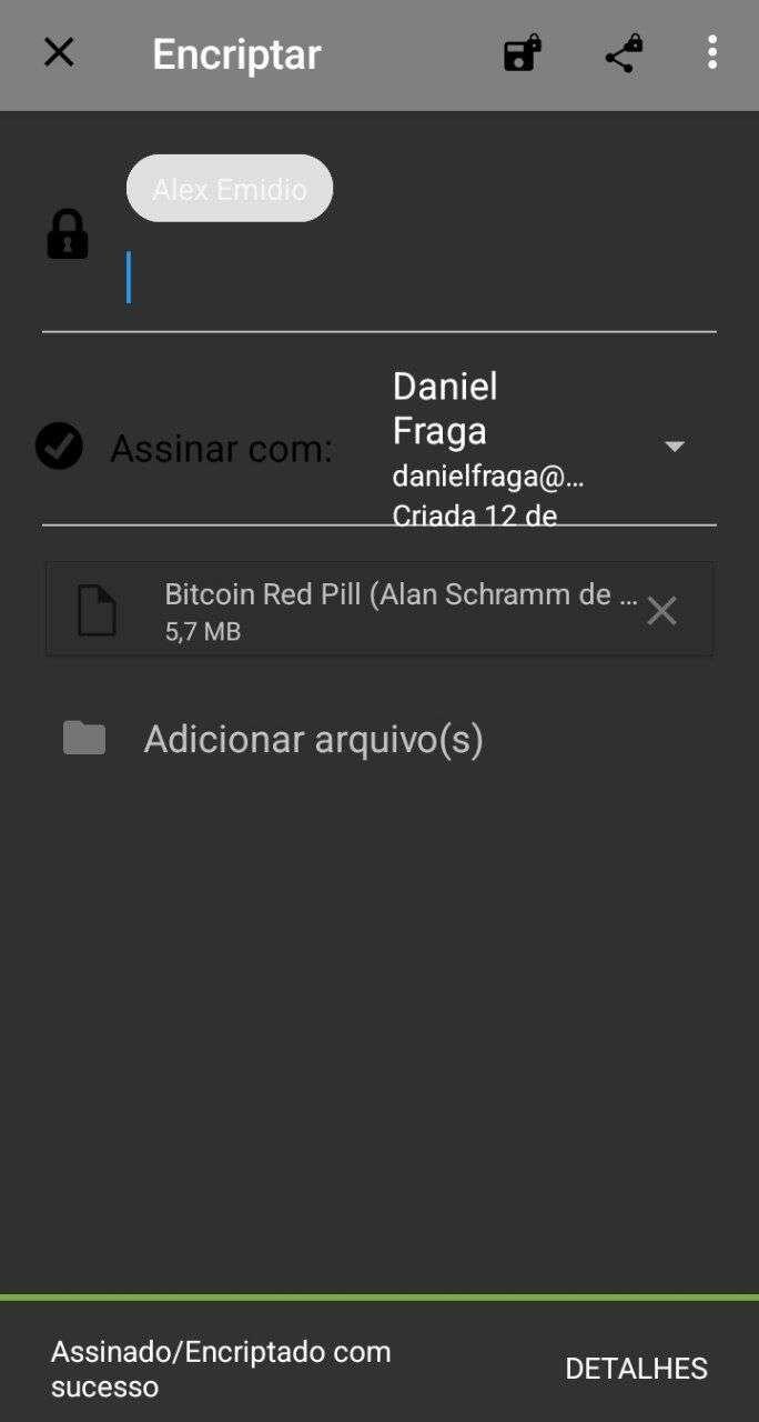 Passo 6: Depois de preencher os campos, você pode compartilhar o arquivo criptografado de duas formas: