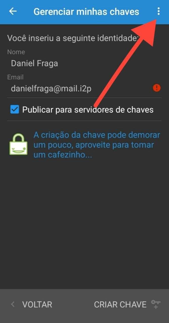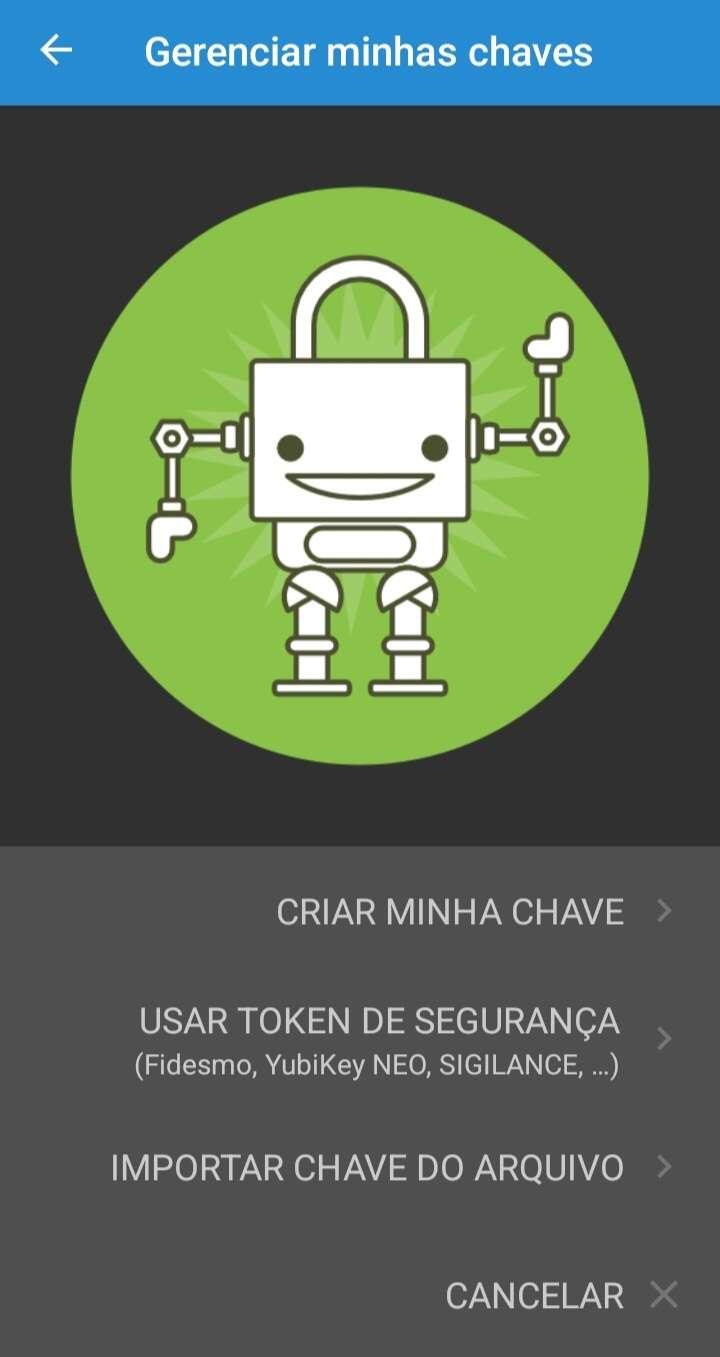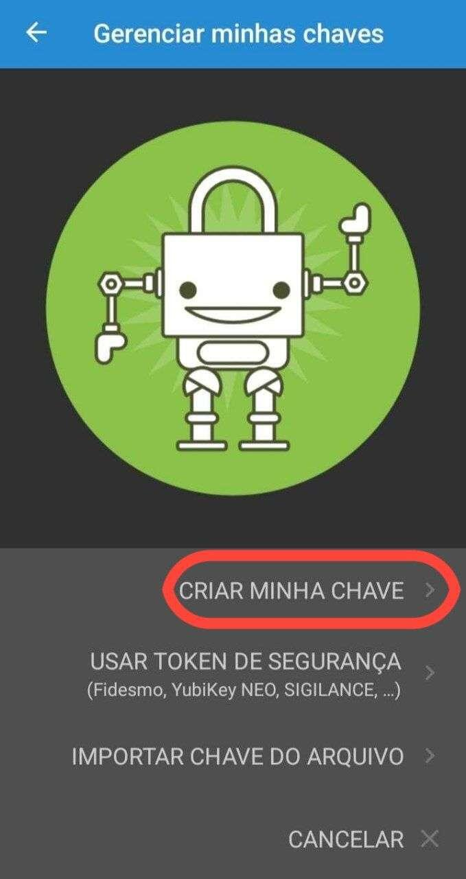 Para iniciantes, recomendamos criar uma nova chave diretamente no aplicativo. abordaremos o uso do OpenKeychain em modo online, que é mais comum para comunicações diárias.