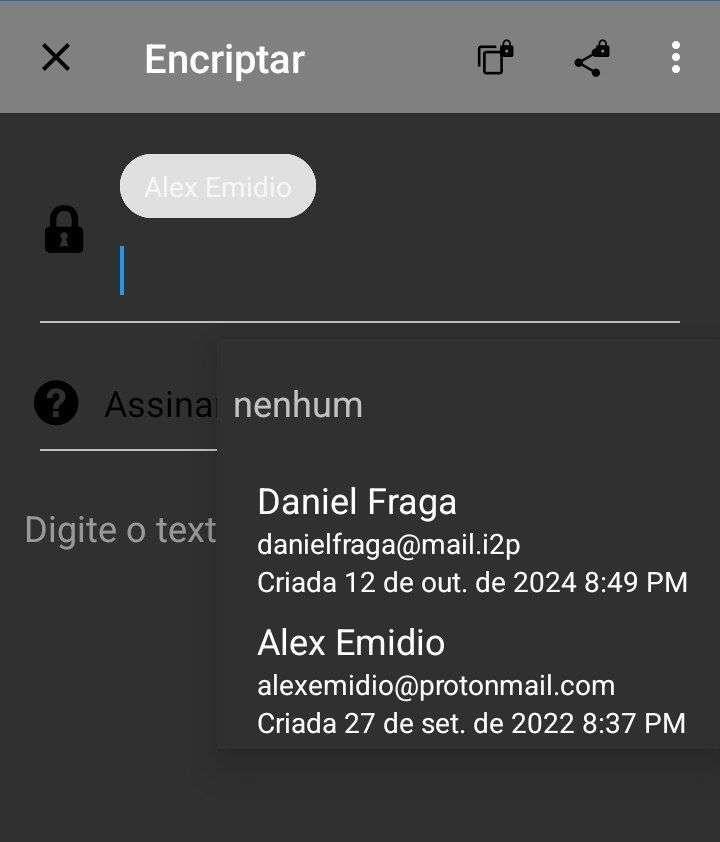 Encriptar para: Selecione o destinatário da mensagem, ou seja, a pessoa para quem você está enviando o texto criptografado