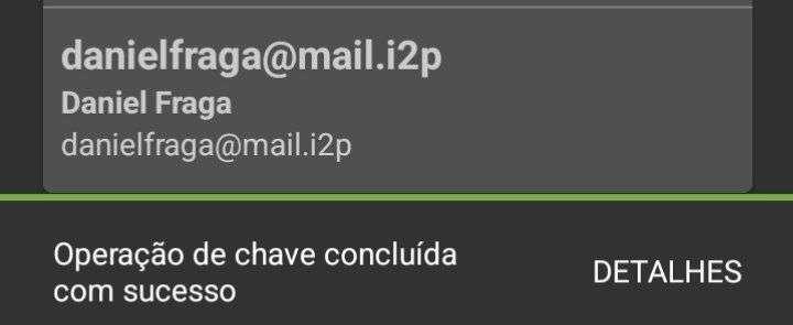 Passo 4: Depois de inserir o código corretamente, o OpenKeychain irá restaurar suas chaves PGP, e uma mensagem de confirmação será exibida, indicando que a recuperação foi concluída com sucesso.